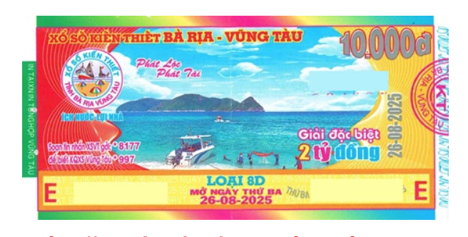 Giải đặc biệt xổ số Vũng Tàu Kỳ vé 8D mở thưởng ngày 26/08/2025