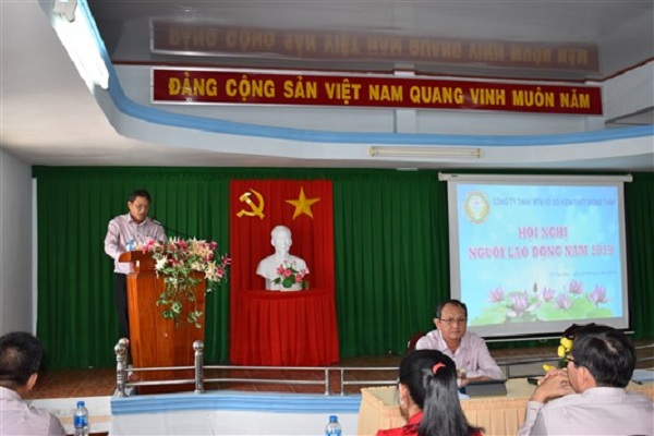 Ông Nguyễn Thanh Huy – Phó Giám đốc, Chủ tịch Công đoàn cơ sởbáo cáo về kết quả tình hình hoạt động Công đoàn Công ty trong năm 2018 và phát động phong trào thi đua đến toàn thể CBCNV trong Công ty tạo sự đồng thuận, đoàn kết, hăng hái thi đua lao động, quyết tâm hoàn thành vượt mức các mục tiêu năm 2019.