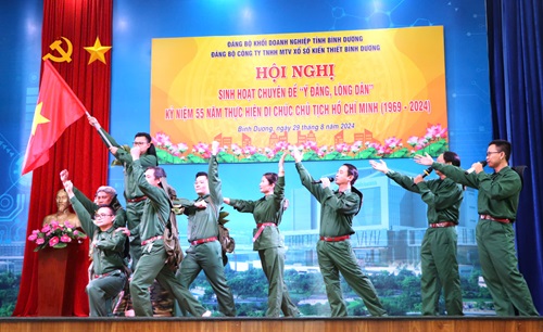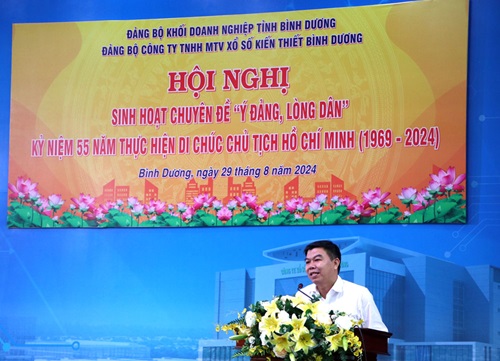 Sáng ngày 29/8/2024, Đảng ủy Công ty TNHH MTV Xổ số kiến thiết Bình Dương đã tổ chức Hội nghị sinh hoạt chuyên đề “ý Đảng, lòng Dân” nhân kỷ niệm 55 năm thực hiện Di chúc của Chủ tịch Hồ Chí Minh (1969 – 2024). Tham dự Hội nghị, về phía Đảng ủy khối Doanh nghiệp có đ/c Hoàng Đức Thuận – Phó Trưởng ban Tuyên giáo; Về phía Đảng ủy Công ty có đ/c Nguyễn Thị Kim Mai – Bí thư Đảng ủy Công ty và toàn thể cán bộ, đảng viên và nhân viên Công ty.
