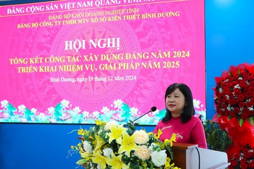 Sáng ngày 19/12/2024, Đảng bộ Công ty TNHH MTV Xổ số kiến thiết Bình Dương đã tổ chức Hội nghị tổng kết công tác xây dựng Đảng năm 2024 và triển khai nhiệm vụ, giải pháp năm 2025. Hội nghị do đồng chí Nguyễn Thị Kim Mai - Bí thư Đảng ủy Công ty chủ trì, với sự tham gia của các đồng chí trong Ban Chấp hành Đảng bộ, Ủy ban kiểm tra Đảng ủy, Ban Chấp hành các Chi bộ, Ban Chấp hành các đoàn thể và Đảng viên toàn Đảng bộ.