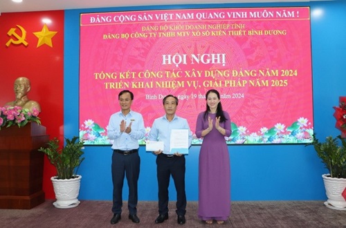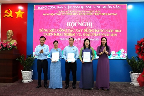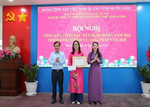 Với những thành tích đã đạt được trong năm 2024, Đảng bộ Công ty được xếp loại Hoàn thành xuất sắc nhiệm vụ, được Ban Thường vụ Đảng ủy khối Doanh nghiệp khen thưởng; 01 cá nhân đang được đề nghị tặng Bằng khen của Tỉnh ủy Bình Dương về thành tích 05 năm liên tục hoàn thành xuất sắc nhiệm vụ. Về phía Đảng ủy, đã quyết định khen thưởng 01 Chi bộ, 14 đảng viên hoàn thành xuất sắc nhiệm vụ; biểu dương 04 Chi bộ và 20 đảng viên.