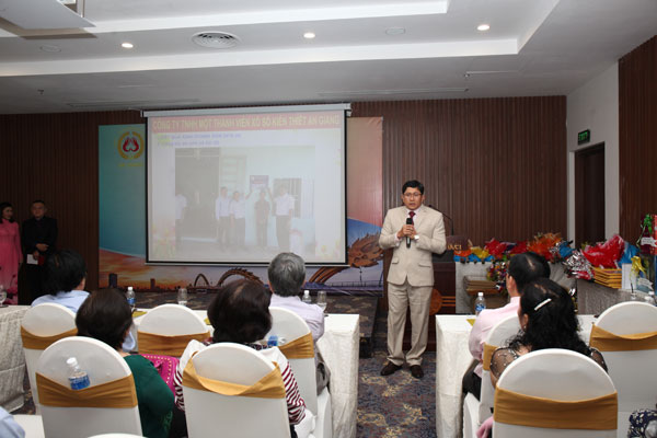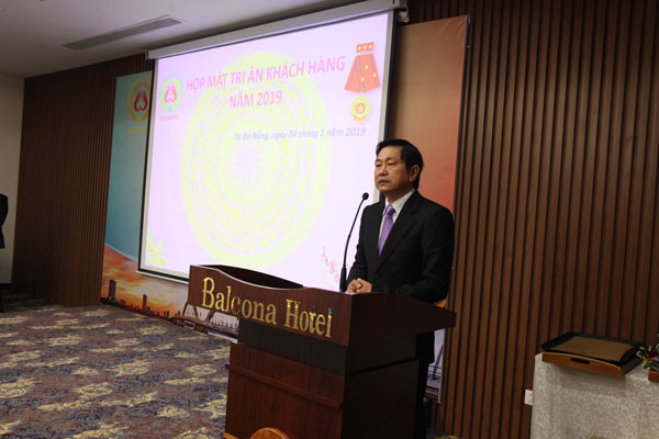 Đại diện Công ty, ông Võ Trung Dũng – Giám đốc Công ty trình bày báo cáo hợp tác giữa đại lý và Công ty trong tiêu thụ vé số An Giang năm 2018, đồng thời gửi lời tri ân đến đại lý Công ty.
