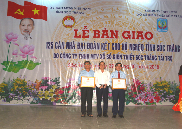 Ngày 29/10/2018, Ủy ban Mặt trận Tổ quốc Việt Nam tỉnh Sóc Trăng phối hợp Công ty TNHH một thành viên Xổ số kiến thiết Sóc Trăng tổ chức Lễ bàn giao 125 căn nhà đại đoàn kết cho các hộ gia đình nghèo trên địa bàn tỉnh Sóc Trăng.