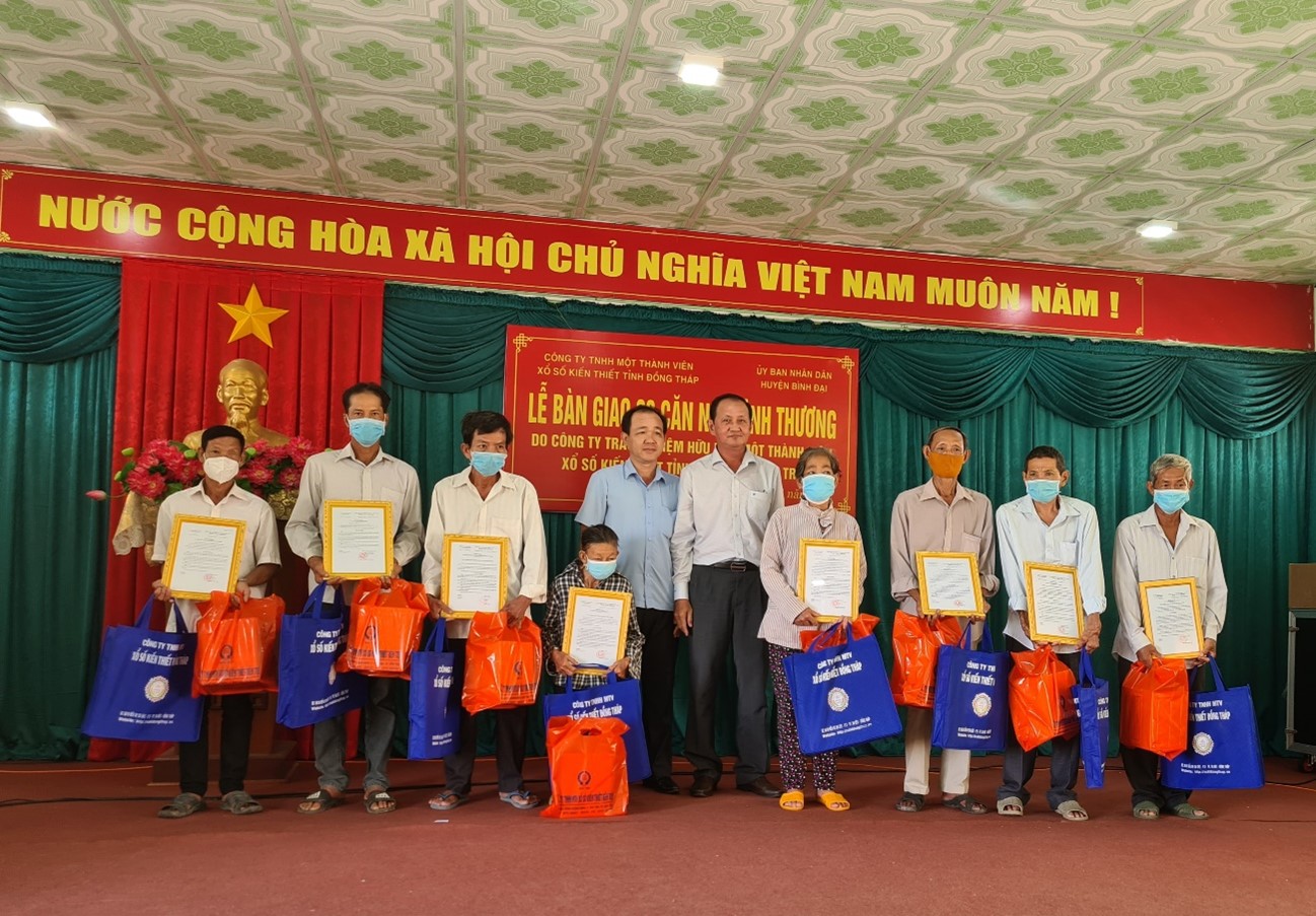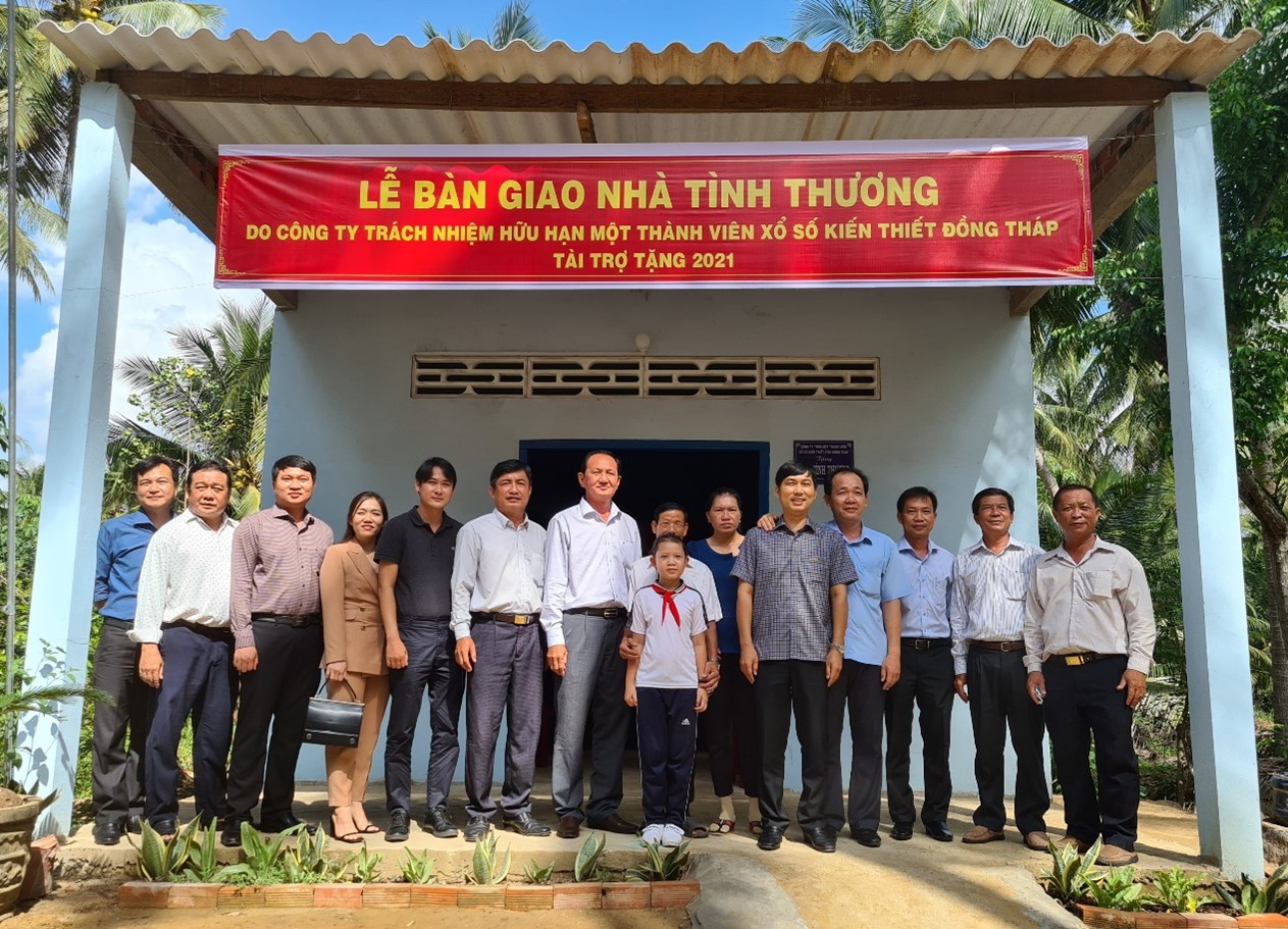 Với truyền thống “ tương thân tương ái”, “lá lành đùm lá rách” của dân tộc ta cùng sự quan tâm của Ban Lãnh đạo Công ty TNHH MTV Xổ số kiến thiết Đồng Tháp đã hỗ trợ kinh phí 400 triệu đồng để xây dựng 8 căn nhà tình thương cho các hộ nghèo trên địa bàn huyện Bình Đại tỉnh Bến Tre.