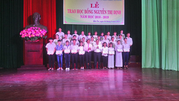 Lễ "Trao học bổng Nguyễn Thị Định tỉnh Bến Tre cho học sinh, sinh viên nghèo hiếu học năm học 2018-2019" do Công ty TNHH MTV Xổ số kiến thiết An Giang tài trợ