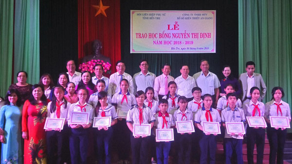 Chiều ngày 04/09/2018, Hội Liên hiệp Phụ nữ tỉnh Bến Tre, phối hợp cùng Công ty TNHH MTV Xổ số Bến Tre và An Giang, tổ chức lễ trao học bổng Nguyễn Thị Định cho học sinh, sinh viên nghèo hiếu học, trên địa bàn tỉnh Bến Tre, do Công ty TNHH MTV Xổ số Kiến thiết An Giang tài trợ,trong chương trình tài trợ đối ứng học bổng, giữa Công ty TNHH MTV Xổ số Kiến thiết An Giang và các công ty xổ số kiến thiết trong khu vực.