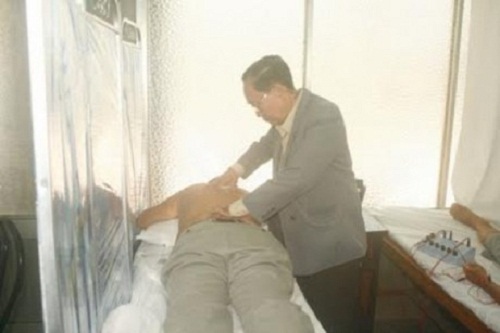 Lương y Trần Hữu Nam đang điều trị cho bệnh bị xương khớp.
