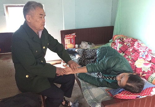 Vào buổi sáng hàng ngày lương y Triệu Quang Vũ đều thăm hỏi từng bệnh nhân điều trị “nội trú” tại phòng trọ nhà ông
