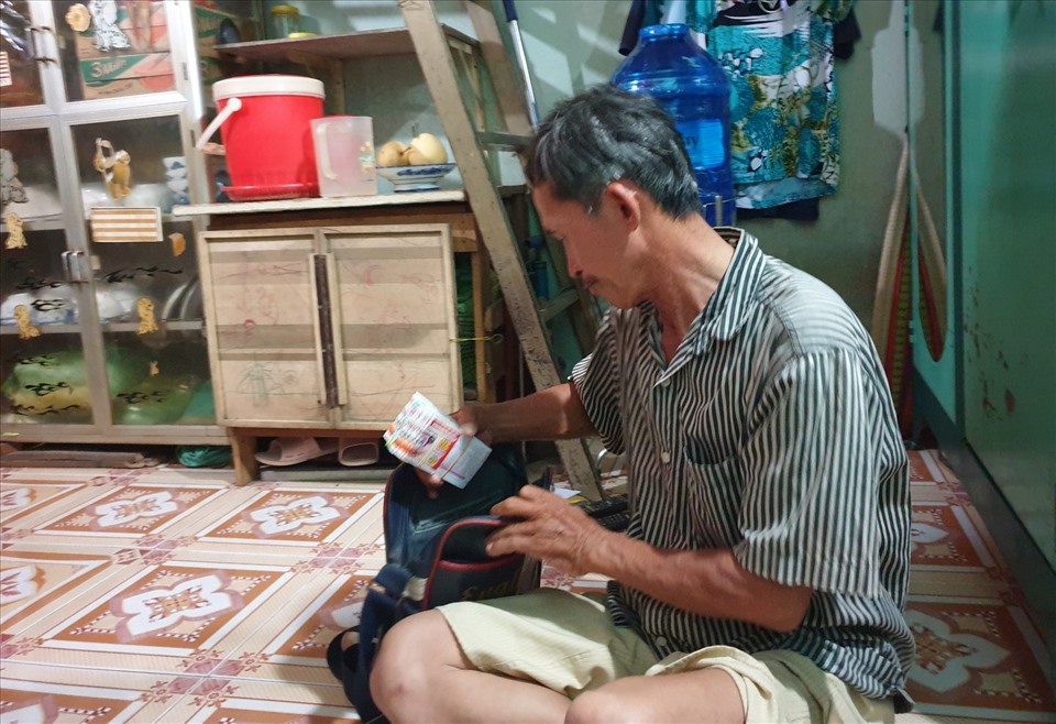 Được biếthoàn cảnhông Hiệp rấtkhó khăn.2 người con lớnđã lập gia đình, còn người vợ bị bệnh tim không làm ăn gì được.Bảnthânông Hiệp bị tật ở chân từ nhỏ, phải chống nạng, đi lại khó khăn.Hai vợ chồng ông ở trọtại một nhà trọ trên địa bàn phường Hưng Định, thành phố Thuận An. Số tiền ông Hiệp kiếm được từ bán vé số để chi tiêu cho cả nhà và chữa bệnh cho vợ.