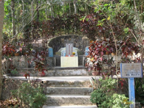Khi du khách tới chiêm bái ngôi cổ tự đứng ngoài nhìn vào, phía bên trái có một lối đi nhỏ men theo triền núi. Đi khoảng 20m, sẽ gặp một ngôi mộ cổ. Bên cạnh mộ, có một tấm bia đá khắc mấy dòng chữ Việt, giải thích gọn tên tuổi của người đã khuất: “Lăng bà Phù Dung — Từ Thành Thục Nhơn — Nguyễn Thị Xuân (1720–1761) — Viên tịch rằm tháng 2 Âm lịch — Hiệu Phù Cừ’”.