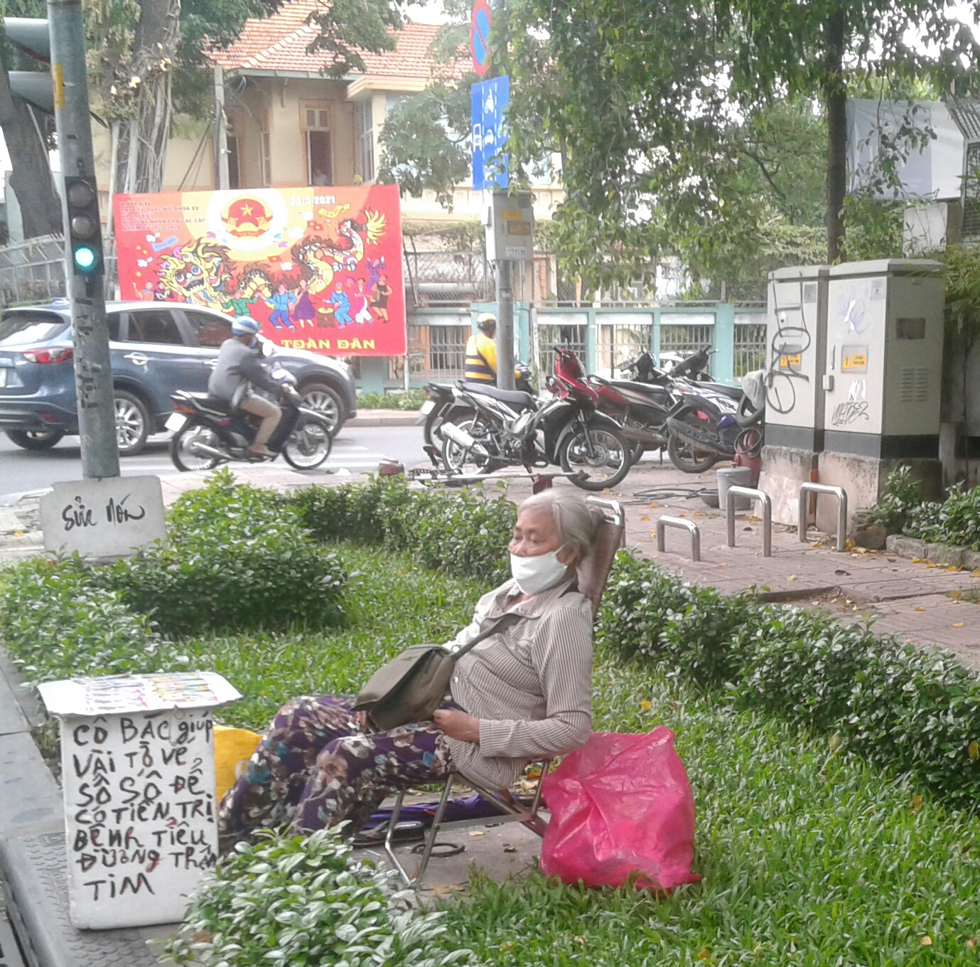 Vì tuổi già, lại bệnh tật, sức khỏe kém, có những cụ già chỉ ngồi ở lề đường, với cái bàn vé số và tấm bảng ghi những dòng chữ đọc lên mủn lòng để mời chào khách qua đường.