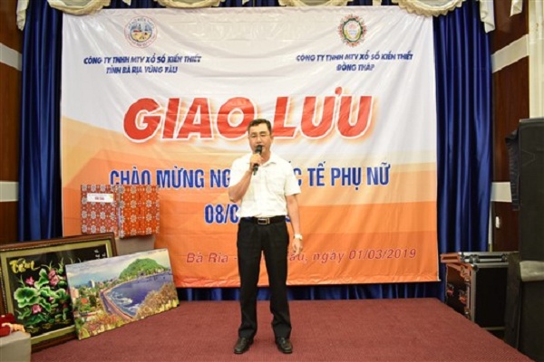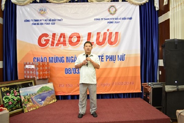 Phát biểu tại buổi giao lưu, ông Nguyễn Thanh Huy - Phó giám đốc, Chủ tịch công đoàn công ty TNHH MTV XSKT Đồng Tháp đã gởi lời cảm ơn chân thành vềsự đón tiếp nồng hậu của công ty bạn. Bên cạnh đó ông cũng dành những lời chúc mừng, lời chúc sức khỏe, hạnh phúc và thành đạt đến các chị em. Cũng thay mặt công ty TNHH MTV XSKT Bà Rịa Vũng Tàu, ông Đoàn Văn Lộc đã gởi lời chào mừng đến công ty TNHH MTV XSKT Đồng Tháp đồng thời gởi tặng những lời chúc tốt đẹp nhất, cho các chị em phụ nữ. Lãnh đạo 2 công ty khẳng định luôn trân trọng sự nỗ lực đóng góp của chị em vào sự phát triển của công ty cũng như mong muốn thắt chặt tình hữu nghị, đoàn kết giữa công ty TNHH MTV XSKT Đồng Tháp và công ty TNHH MTV XSKT Bà Rịa Vũng Tàu.