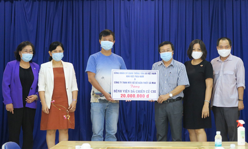Tập thể lao động thuộc Công ty TNHH MTV Xổ số kiến thiết Cà Mau gửi trao tặng bồi dưỡng cho các y bác sĩ ở Bệnh viện dã chiến Củ Chi..