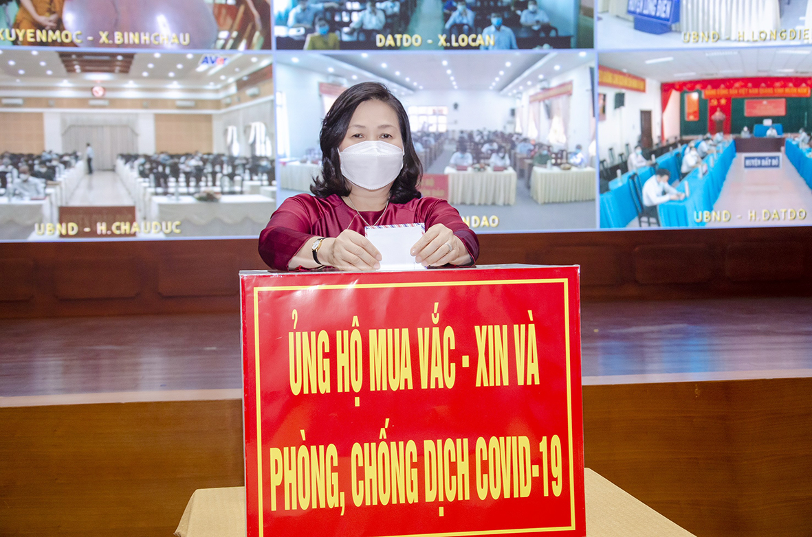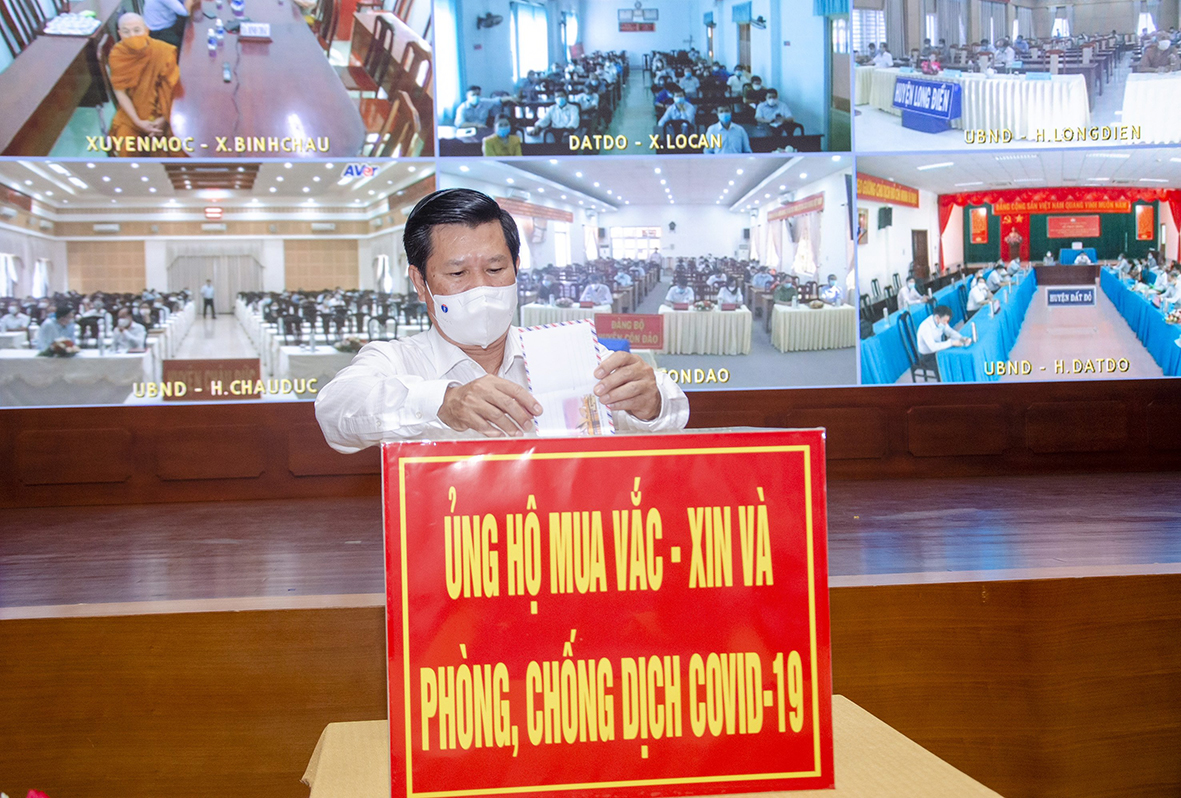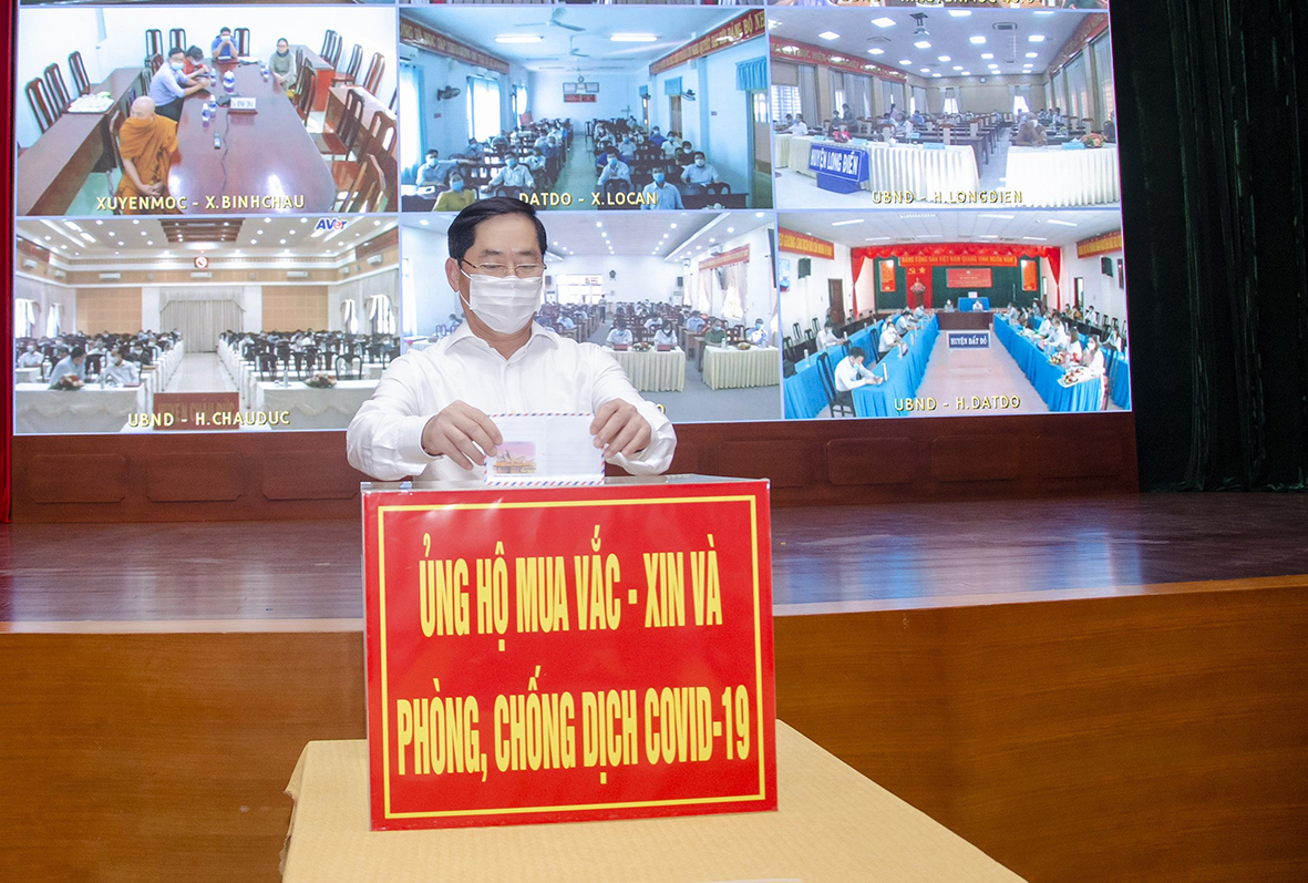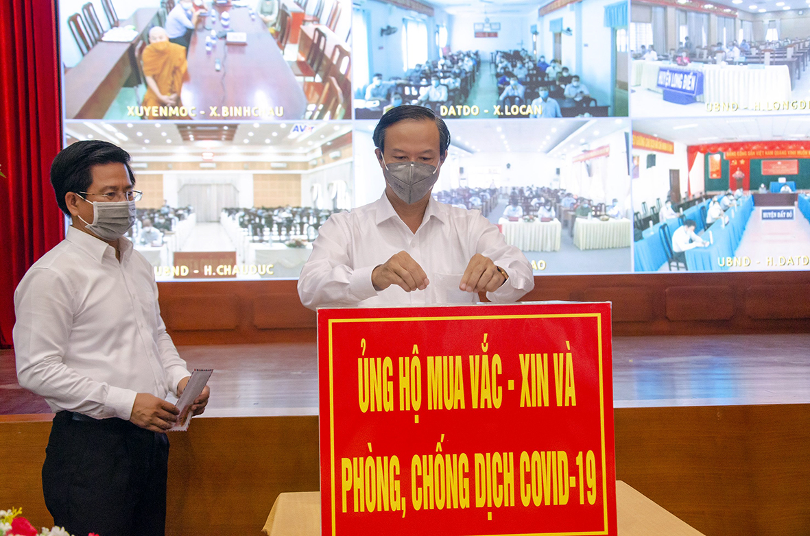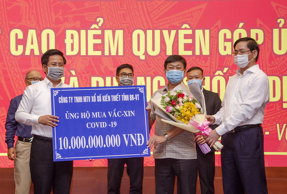 Ngay sau Lời kêu gọi của UBMTTQ Việt Nam tỉnh và phát biểu của Bí thư Tỉnh ủy Phạm Viết Thanh, đại diện các cơ quan, đơn vị, DN, các tổ chức tôn giáo, cán bộ, CCVC-NLĐ đã ủng hộ hơn 160 tỷ đồng để mua vaccine và phòng chống dịch COVID-19. Trong đó, Tập đoàn Hưng Thịnh ủng hộ 24 tỷ đồng (50 ngàn liều vaccine, 100 ngàn khẩu trang y tế, 3 ngàn trang phục bảo hộ y tế). Các đơn vị ủng hộ 10 tỷ đồng gồm: Tổng Công ty Khí Việt Nam (PV GAS), Liên Doanh Việt – Nga Vietsopetro, Công ty TNHH MTV Xổ số Kiến thiết tỉnh BR-VT, Công ty CP Thanh Bình Phú Mỹ, Công ty CP Công nghệ Viễn thông Sài Gòn; Tập Đoàn SCG - Thái Lan (Công ty TNHH Hóa dầu Long Sơn), Công ty TNHH Hóa chất Hyosung Vina, Tập Đoàn Địa ốc Novaland (TP. Hồ Chí Minh).
