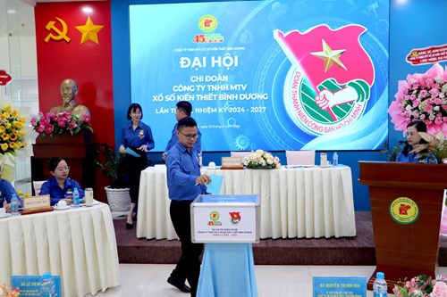 Sau hơn ba giờ làm việc nghiêm túc, dân chủ với tinh thần trách nhiệm cao, Đại hội Chi đoàn cơ sở Công ty Xổ số kiến thiết Bình Dương, nhiệm kỳ 2024 - 2027 đã hoàn thành chương trình đề ra. Các đoàn viên tham dự đã phát huy tinh thần trách nhiệm, tập trung trí tuệ, 100% đại biểu đã nhất trí thông qua Nghị quyết Đại hội và tiến hành bầu Ban Chấp hành nhiệm kỳ 2024 – 2027 gồm 05 đồng chí, cả 05 đồng chí đều có năng lực, phẩm chất, nhiệt huyết và trách nhiệm để lãnh đạo công tác đoàn nhiệm kỳ mới; đồng chíPhạm Nguyễn Bảo Châuđược tái cử chức danh Bí thư Chi đoàn với sự tín nhiệm tuyệt đối.