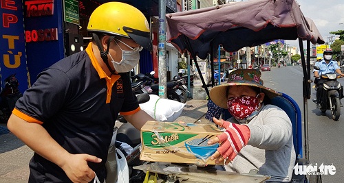 Những ngày ở TP. HCM ngoài sự hỗ trợ của chính quyền TP. nhiều cá nhân và tổ chức từ thiện xã hội đã và đang chung tay hỗ trợ người bán vé số dạo với những việc làm rất cụ thể thiết thực, với những phần quà gồm gạo, dầu ăn, nước mắm, mì gói... Trên nhiều tuyến đường cũng đã xuất hiện nhiều hơn những thùng bánh mì, những phần gạo, mì gói, nước mắm “miễn phí”, với dòng chữ ghi “ai thiếu cứ đến lấy”…Những phần quà tuy nhỏ, nhưng thật ấm áp tình người chắc chắn sẽ giúp cho những người bán vé số dạo yên tâm vượt qua giai đoạn khó khăn này.