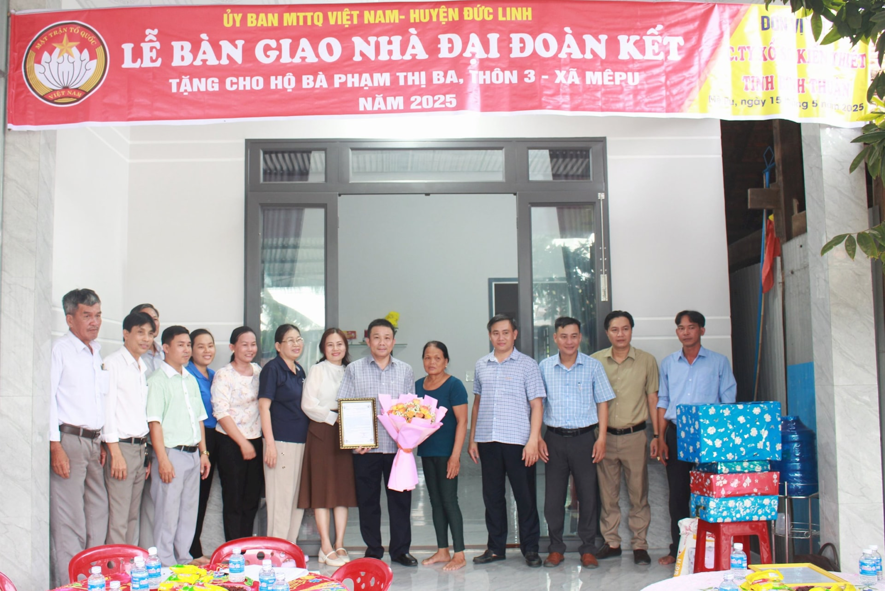 Công ty TNHH MTV Xổ số kiến thiết Bình Thuận vừa phối hợp với UBMTTQ Việt Nam huyện Đức Linh tổ chức lễ bàn giao 3 căn nhà “Đại đoàn kết” cho các hộ dân có hoàn cảnh khó khăn trên tại xã Mê Pu, huyện Đức Linh (Bình Thuận).