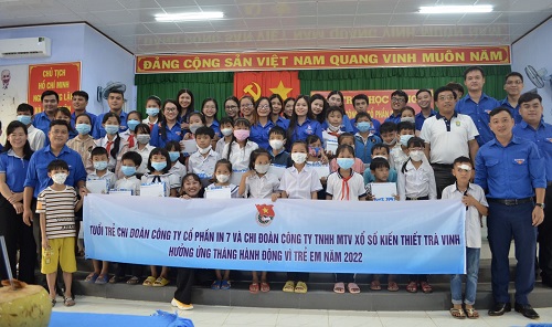 >Nhằm quán triệt và nâng cao nhận thức trong cán bộ, đảng viên, đoàn viên trong việc thực hiện chủ trương của Tỉnh ủy, Đảng ủy Khối các cơ quan và Doanh nghiệp tỉnh Trà Vinh, Đảng ủy Công ty Xổ số kiến thiết Trà Vinh về công tác đỡ đầu xã. Chi đoàn Công ty Xổ số kiến thiết Trà Vinh luôn phát huy tinh thần xung kích, tình nguyện>trong việc chăm lo, giáo dục, rèn luyện các em thiếu nhi có hoàn cảnh khó khăn, vượt khó vươn lên trong học tập.