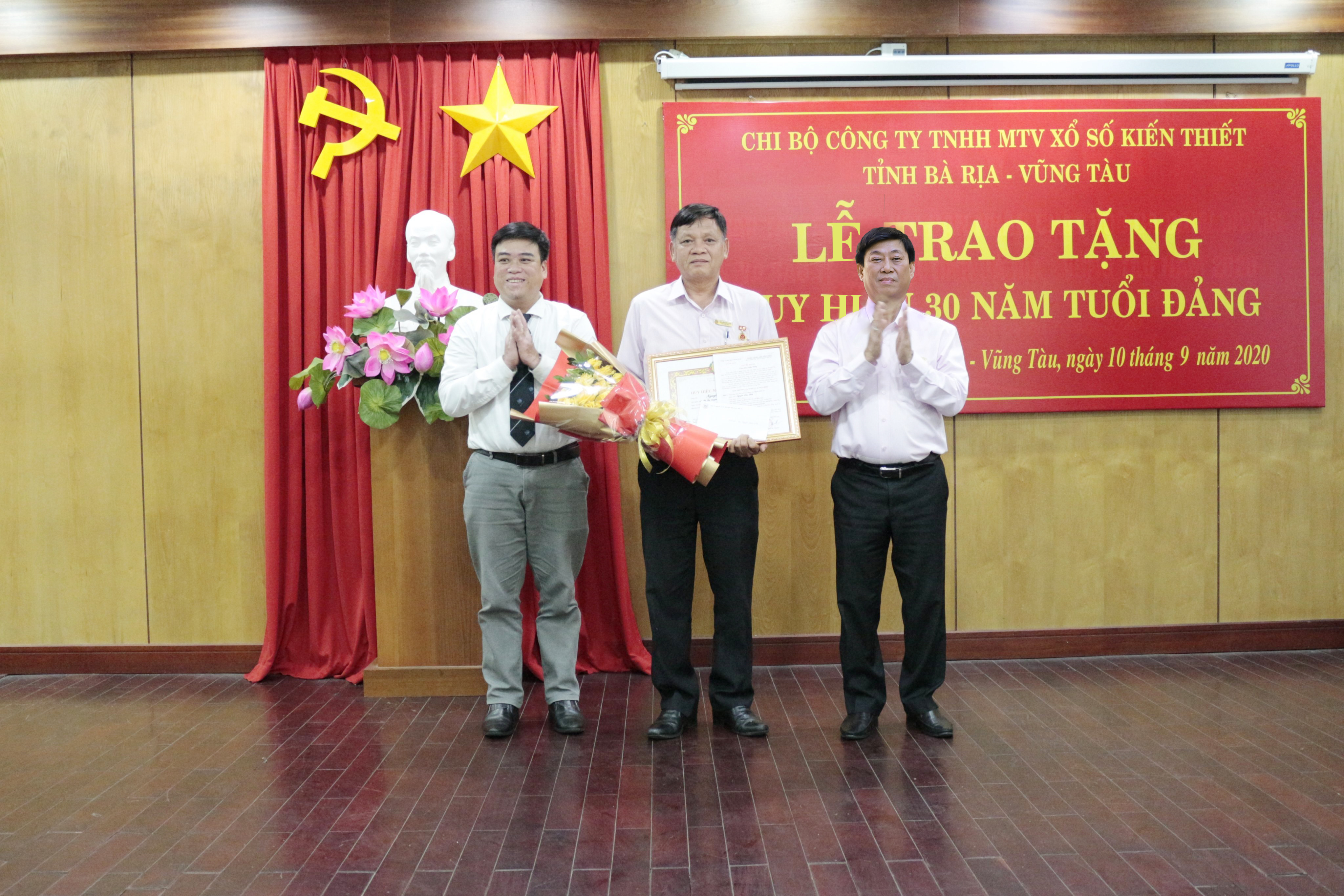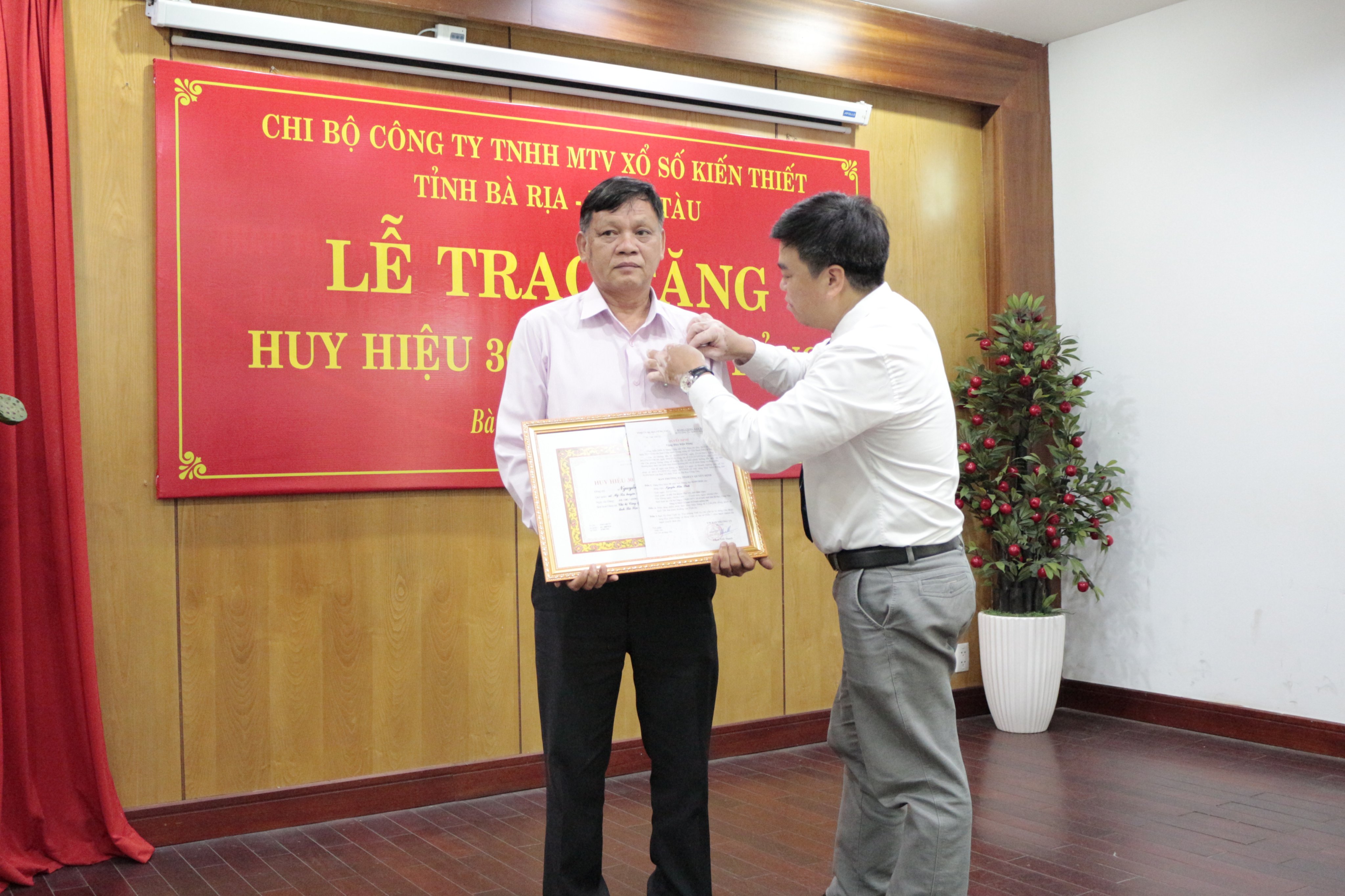 Chi bộ Công ty TNHH MTV Xổ số Kiến thiết Bà Rịa – Vũng Tàu vừa tổ chức Lễ trao Huy hiệu 30 năm tuổi Đảng cho đồng chí Nguyễn Hữu Lĩnh – Phó Bí thư Chi bộ, Phó Giám đốcCông ty TNHH MTV Xổ số Kiến thiết Bà Rịa – Vũng Tàu.