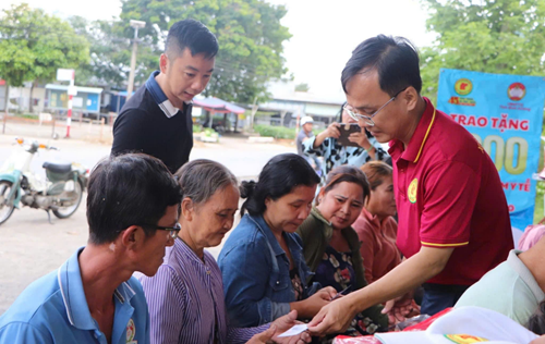 Trao tặng thẻ BHYT cho người bán vé số lẻ tại huyện Dầu Tiếng, tỉnh Bình Dương