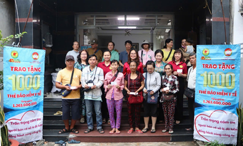Trao tặng thẻ BHYT cho đoàn viên nghiệp đoàn vé số phường Mỹ Phước,thành phố Bến Cát, tỉnh Bình Dương