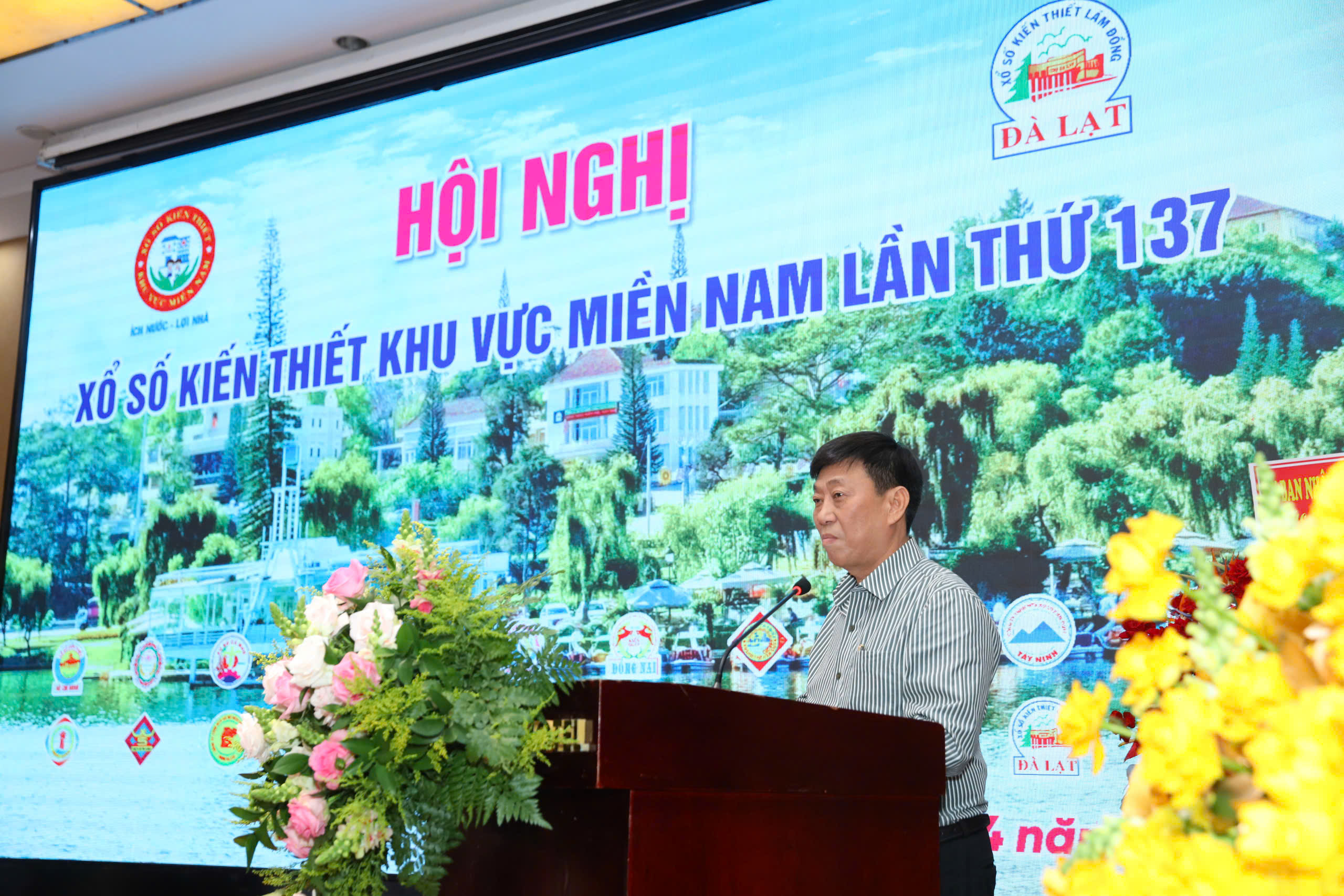 Ông Võ Ngọc Hiệp, Ủy viên Ban thường vụ Tỉnh ủy, Phó Chủ tịch UBND tỉnh Lâm Đồng, Chủ tịch Hội đồng giám sát xổ số tỉnh Lâm Đồng phát biểu và chào mừng hội nghị đánh giá cao về các hoạt động kinh doanh của Công ty Xổ số kiến thiết của 21 tỉnh thành khu vực miền Nam Các Công ty Xổ số trong khu vực đã nỗ lực phấn đấu và đạt được những kết quả thắng lợi, các chỉ tiêu thực hiện đều tăng năm sau cao hơn năm trước. Đặc biệt là sự đóng góp rất lớn cho ngân sách Nhà nước, góp phần điều phối lại thu nhập quốc dân, để phục vụ, đầu tư cho các lĩnh vực: y tế, giáo dục, phúc lợi xã hội và tạo công ăn, việc làm cho đối tượng có hoàn cảnh khó khăn.