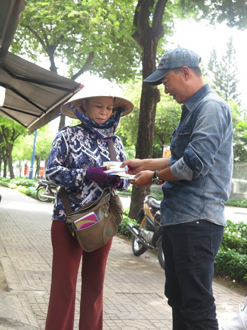 Ông Ánh chia sẻ, chúng tôi vốn là những nông dân, xuất thân từ những làng quê nghèo, nên ai cũng giỏi bươn chải, kiên nhẫn chịu đựng, miễn là kiếm được tiền bằng nghề lương thiện. Chúng tôi lội bộ hàng chục km khắp ngõ ngách, đường phố từ quận 3, quận 1, sang quận 5, quận 6, thậm chí có người xuống tới huyện Bình Chánh để mời chào khách mua từng tờ vé số là chuyện thường ngày.