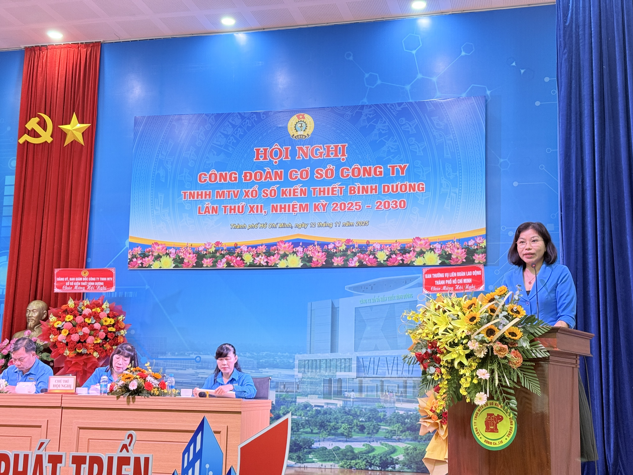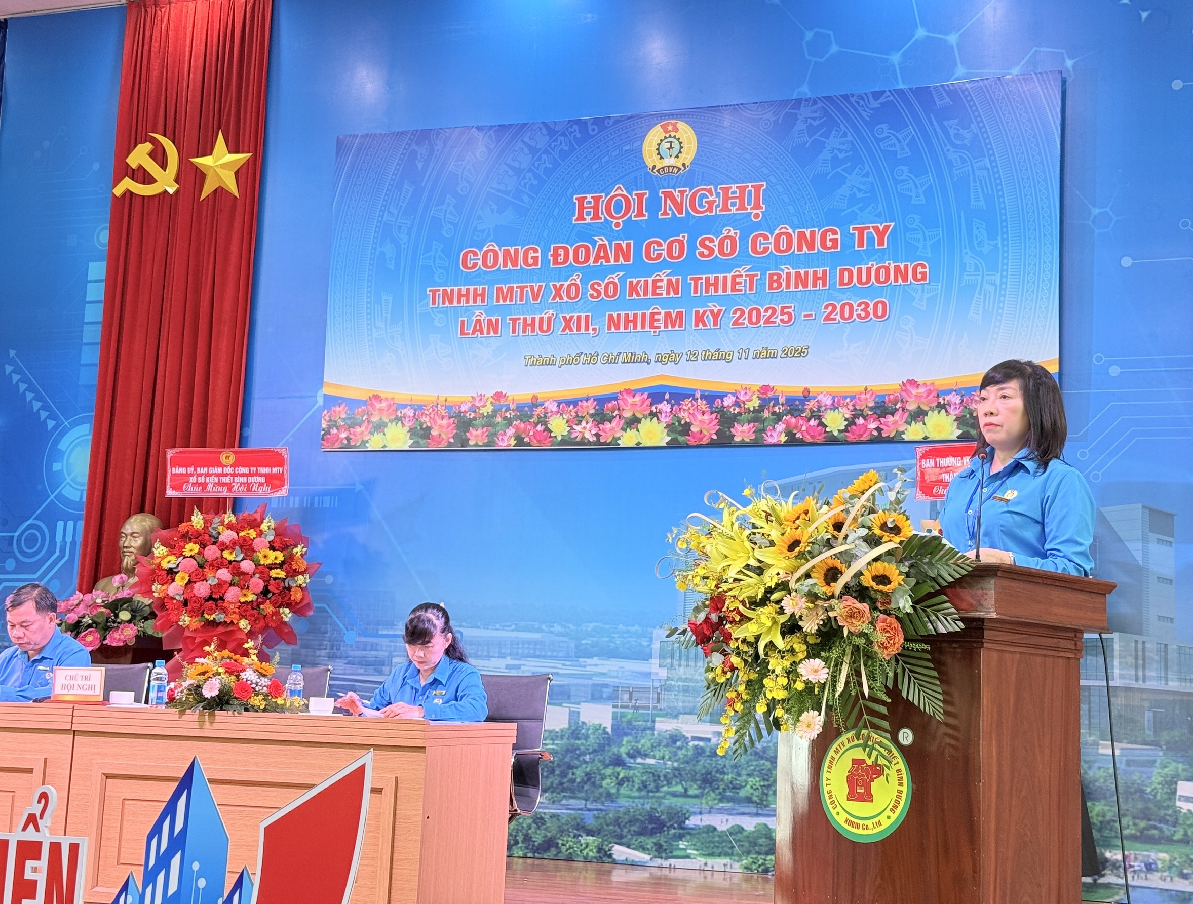 Chiều 12/11/2025, Công đoàn cơ sở Công ty TNHH MTV Xổ số kiến thiết Bình Dương (XSKT Bình Dương) tổ chức thành công Hội nghị lần thứ XII, nhiệm kỳ 2025 – 2030. Hội nghị nhằm đánh giá kết quả hoạt động công đoàn nhiệm kỳ 2023 – 2025, đồng thời đề ra phương hướng, mục tiêu và nhiệm vụ trọng tâm cho nhiệm kỳ mới.