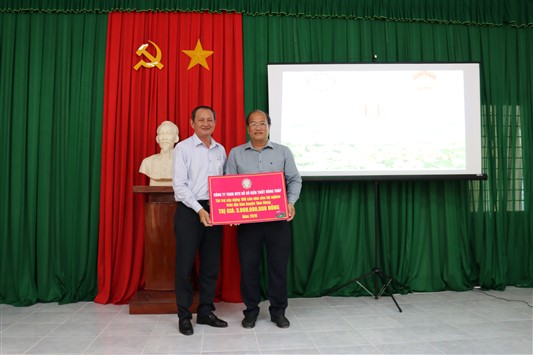 Cũng trong dịp này, Công ty TNHH MTV Xổ số kiến thiết Đồng Tháp trao huyện Tam Nông bảng tượng trưng 100 căn nhà cho hộ nghèo 6 xã vùng đệm Vườn Quốc gia Tràm Chim năm 2019 với tổng trị giá 3 tỷ đồng.