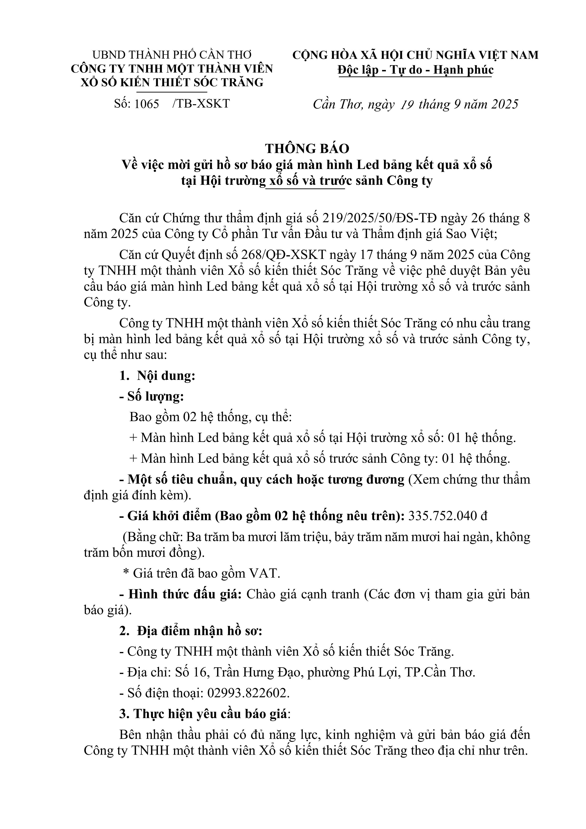 Thông Báo Công ty xổ số Kiến thiết tỉnh Tiền Giang